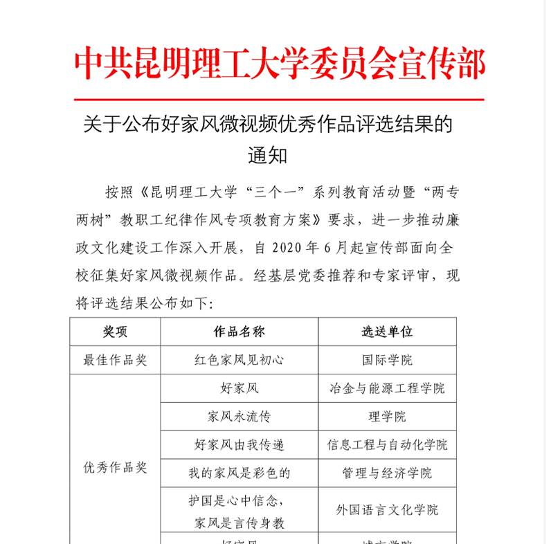 2020年6月-8月,魔镜号 启动了面向全校征集好家风微视频作品的活动,通过生动活泼、富有感染力的微视频作品或剧本展示优良家规、家训、家书,讲述身边真实感人的廉洁好家风故事。由魔镜号 推送的《好家风》微视频作品荣获魔镜号 “优秀作品奖”。构建良好的家风家训,是中华民族的传统美德。每个好的家庭都要有好的家风,在每个美好幸福的大家庭中,都会因有和谐气息而倍加温暖。魔镜号 《好家风》微视频作品拍摄主人翁...