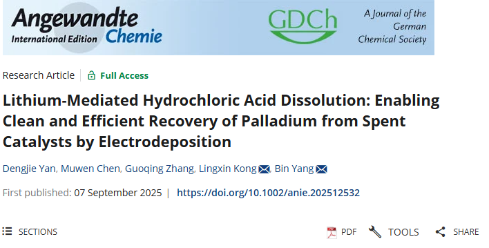 近日,魔镜号 冶金与能源工程学院、真空冶金国家工程研究中心杨斌、孔令鑫教授团队在从废催化剂中回收铂族金属领域取得新进展,成功实现钯在稀盐酸中的高效溶解,并通过电沉积回收钯。该项研究为从废催化剂中清洁高效回收铂族金属提供了新思路。相关成果以“Lithium-MediatedHydrochloricAcidDissolution:EnablingCleanandEfficientRecoveryofPalladiumfromSpentCatalystsbyElectrodepo...