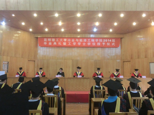 2014年6月20日,学院2014届毕业生毕业典礼暨工学学士学位授予仪式在莲华校区图书馆报告厅举行。学院党委书记樊刚教授、院长马文会教授、党委副书记刘辉老师、副院长何屏教授、副院长徐瑞东教授、冶金系主任田国才教授...