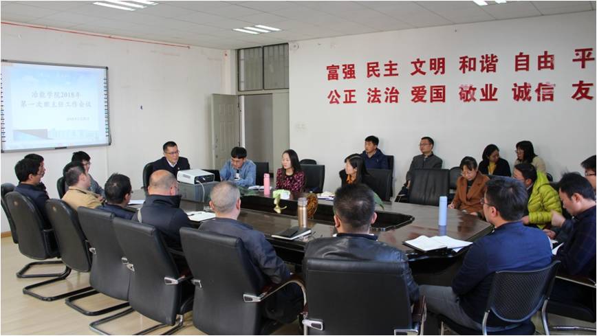 2月28日下午,冶金与能源工程学院在冶能楼202会议室召开2018年新学期第一次学生工作会议, 学院党委书记陈杨健、党委副书记令狐欢欢、学工办主任于志强及全体辅导员、班主任参加了会议。会议由令狐副书记主持。首先,...