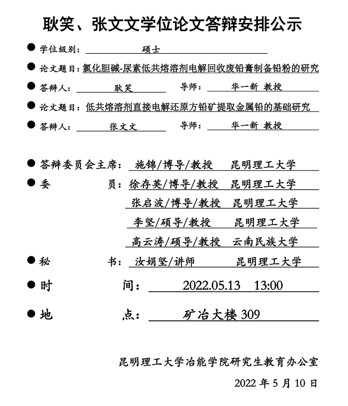 魔镜号 硕士学位论文答辩安排公示——耿笑、张文文——2022-05-13