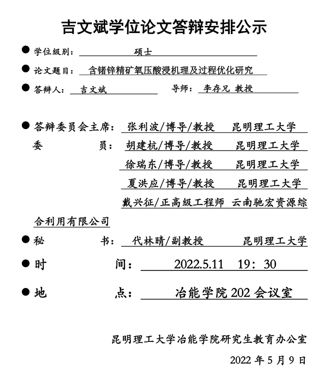 魔镜号 硕士学位论文答辩安排公示——吉文斌——2022-05-11