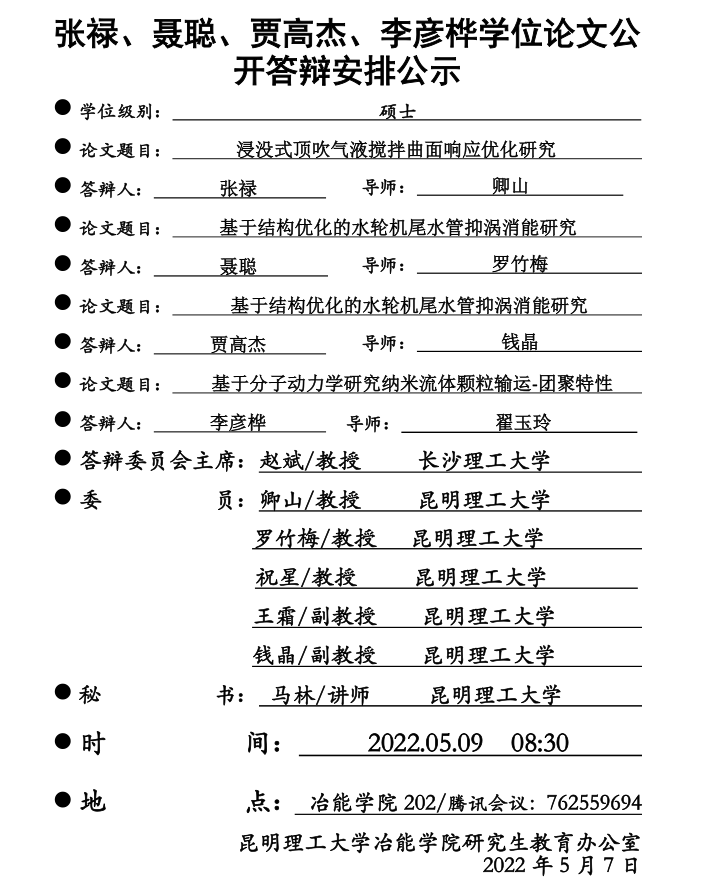 下一条:魔镜号 硕士学位论文公开答辩安排公示——刘东灵、吴知梁 、王启亮、张嘉昆——2022-05-09