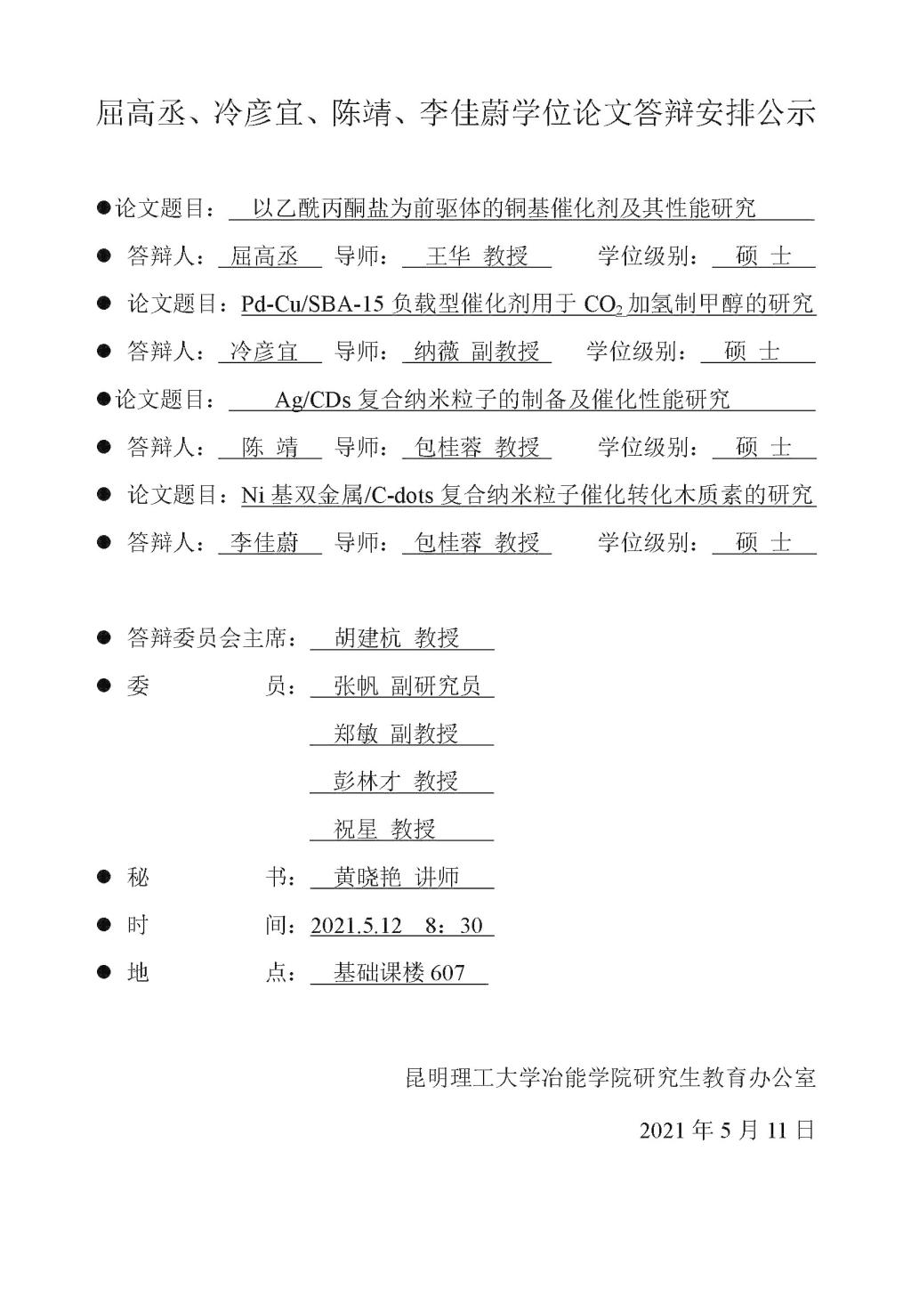 下一条:冶能博士学位论文答辩公示--李银,王韵珂2021,5.14