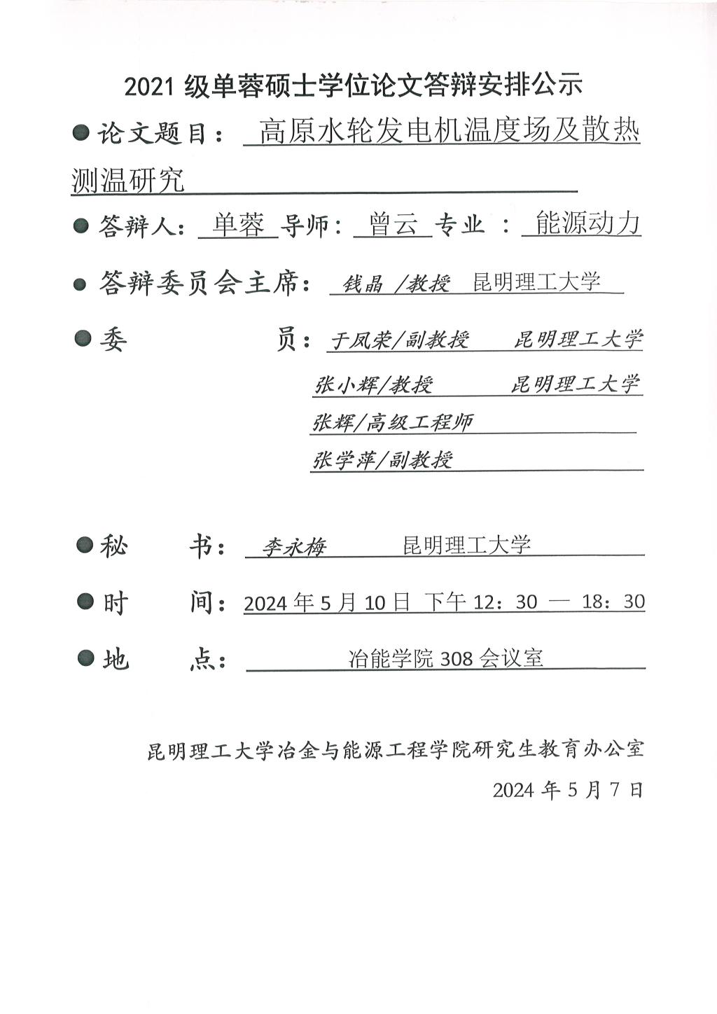 上一条:2024年硕士论文答辩公示——彭励怀,王安妮,刘力,孙滢博,黄先行,曹文博,王耀欢2024.5.13