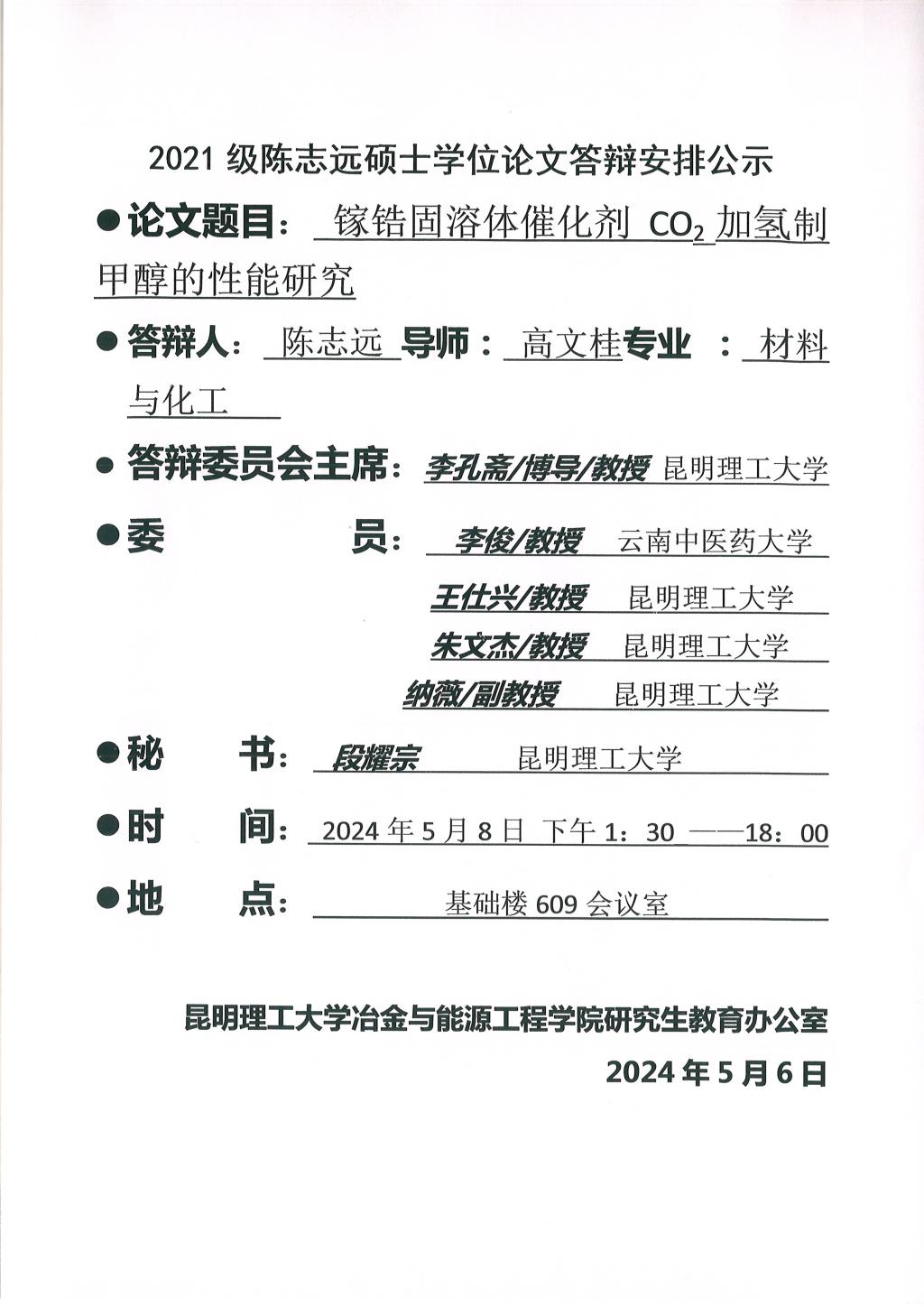 2024年硕士论文答辩公示——陈志远2024.5.8