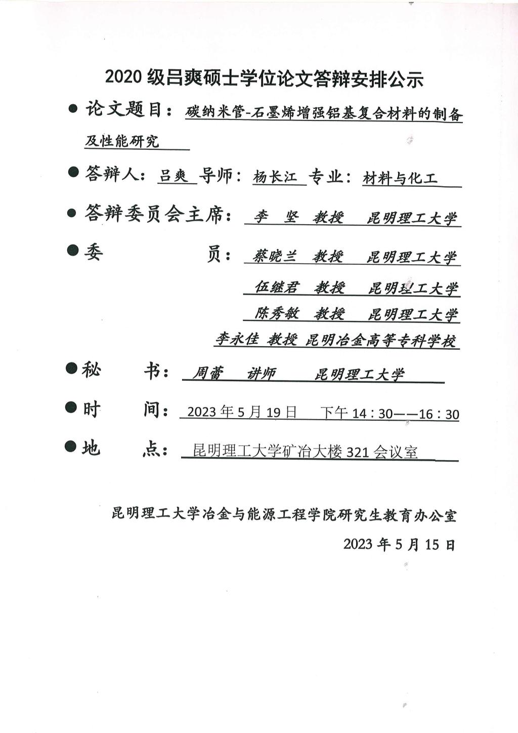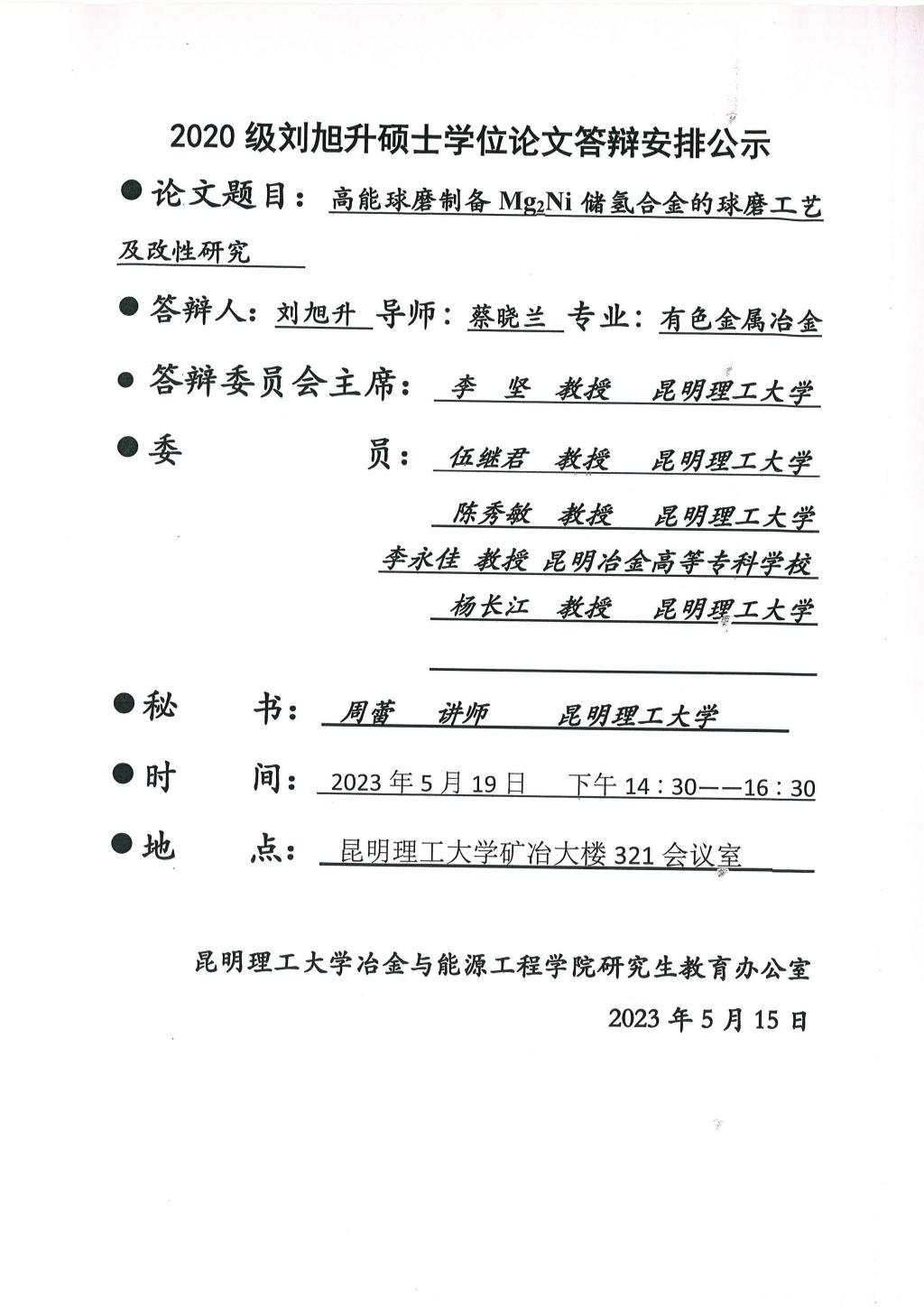 硕士学位论文答辩公示——刘旭升,吕爽——2023.05.19