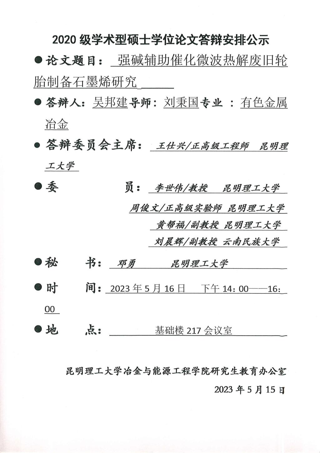 硕士学位论文答辩公示——鲍瑞,吴邦建,蒋桂玉——2023.05.16