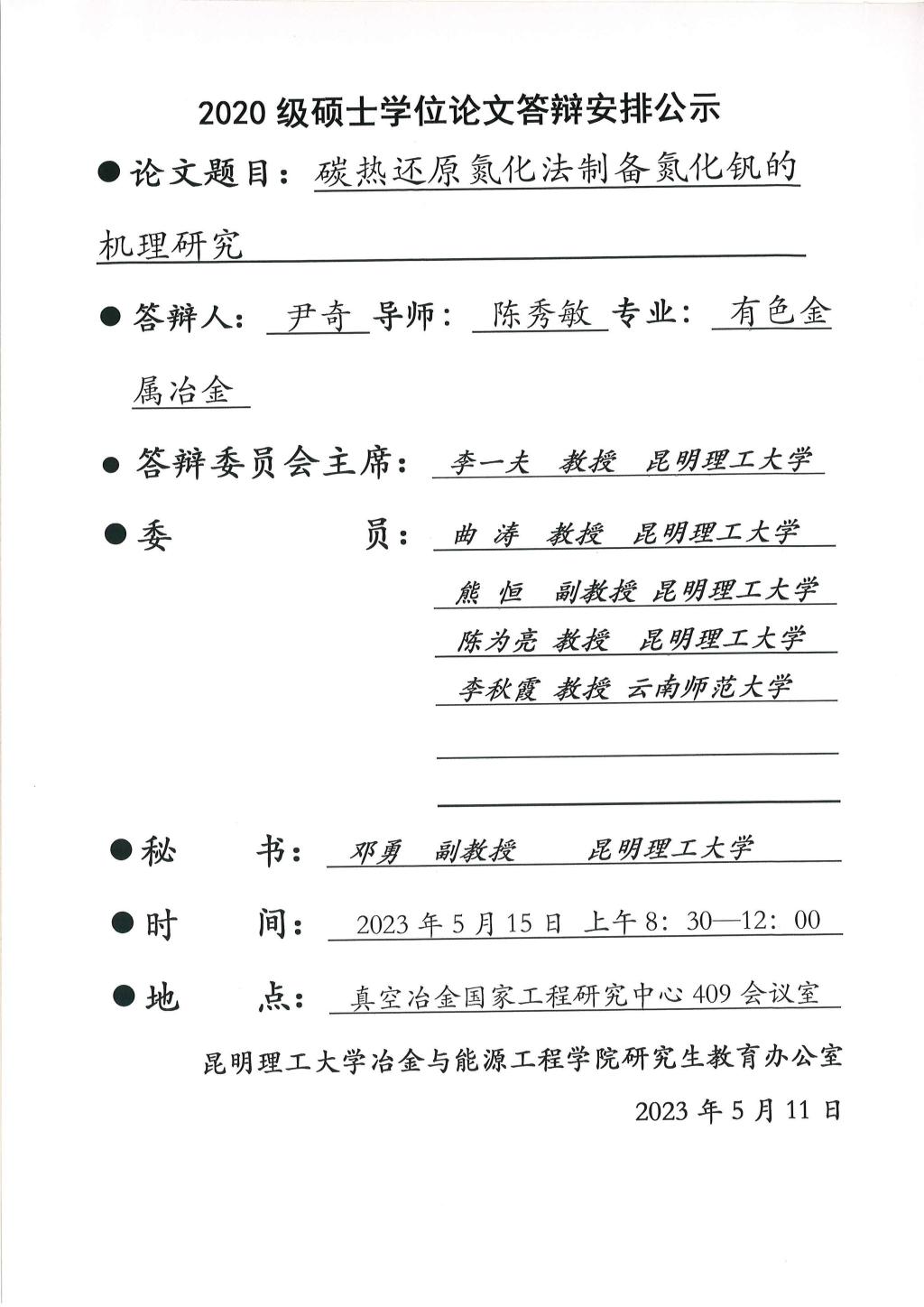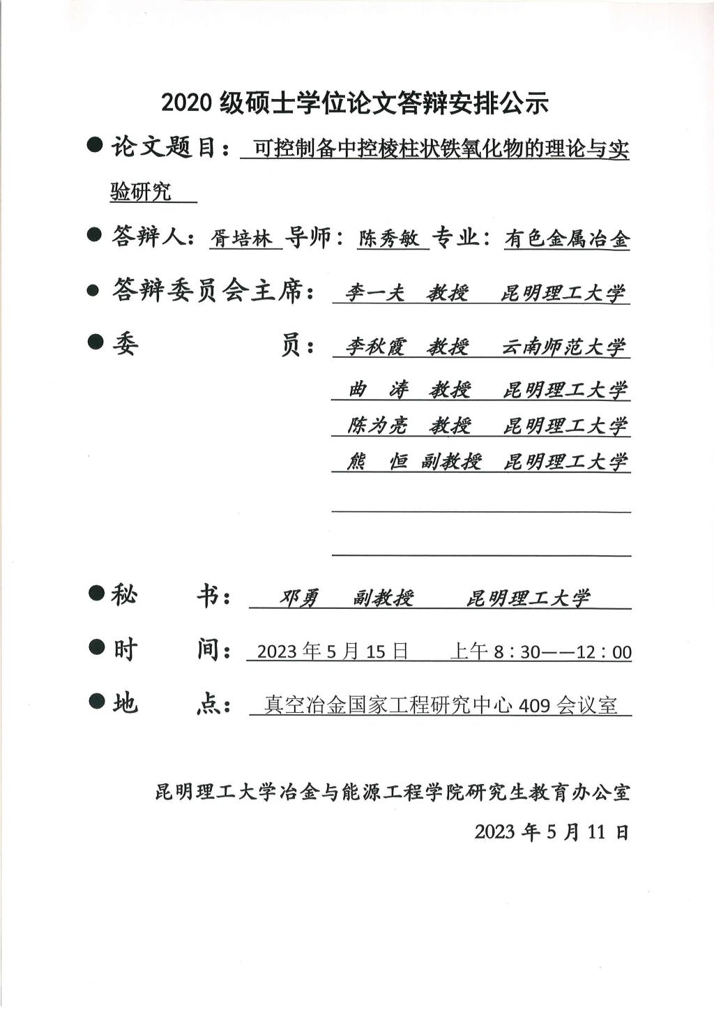 上一条:硕士学位论文答辩公示——陈静,张德起,管文翰,张凯杰,苏文婷,史书浩,麻艳佳——2023.05.12