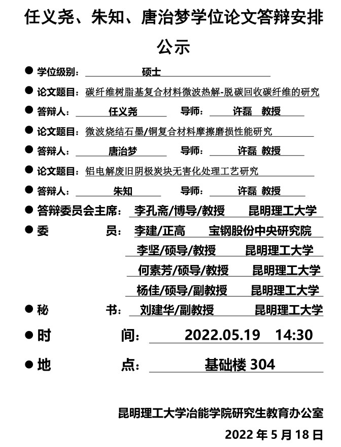 魔镜号 硕士学位论文答辩安排公示——王凯徽——2022-05-20