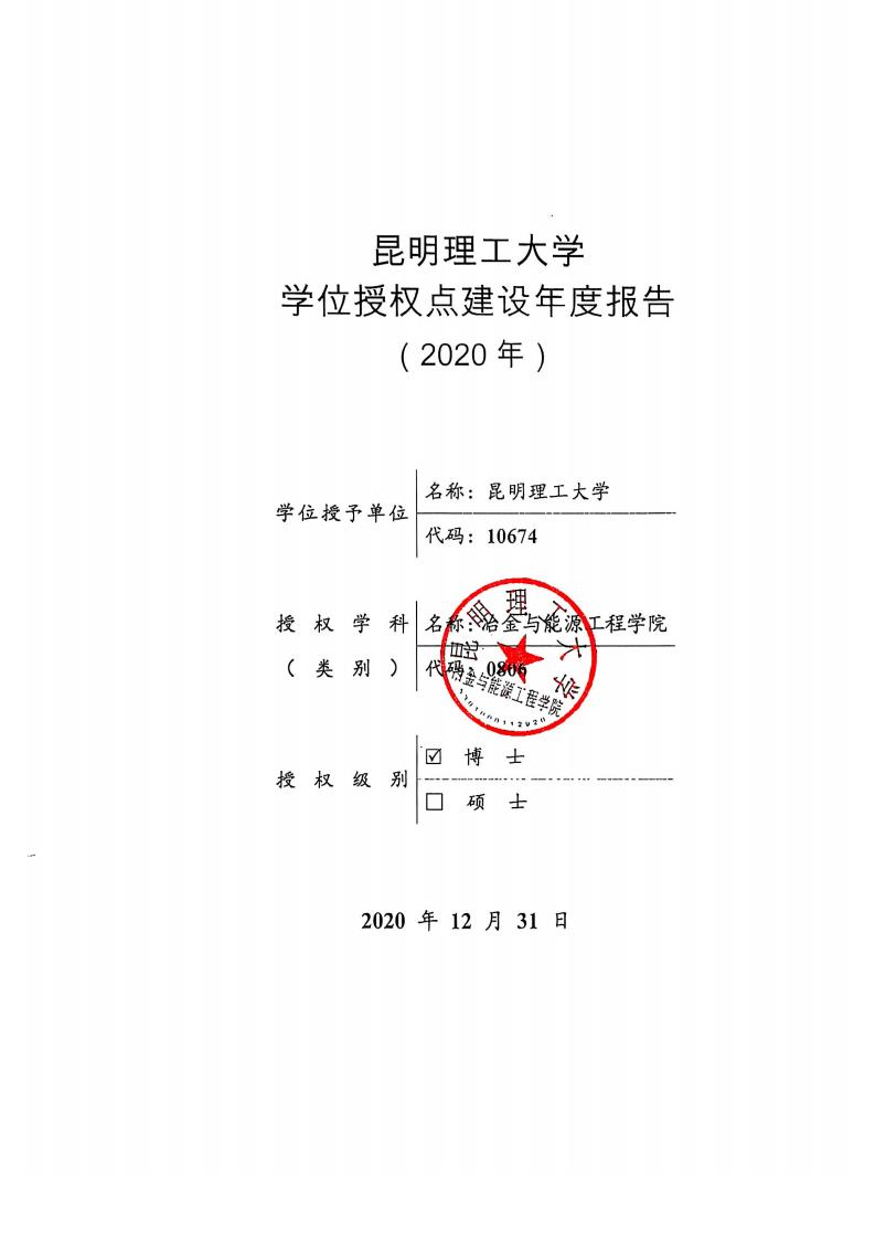2020年度博士学位授权点建设年度报告(冶金工程)