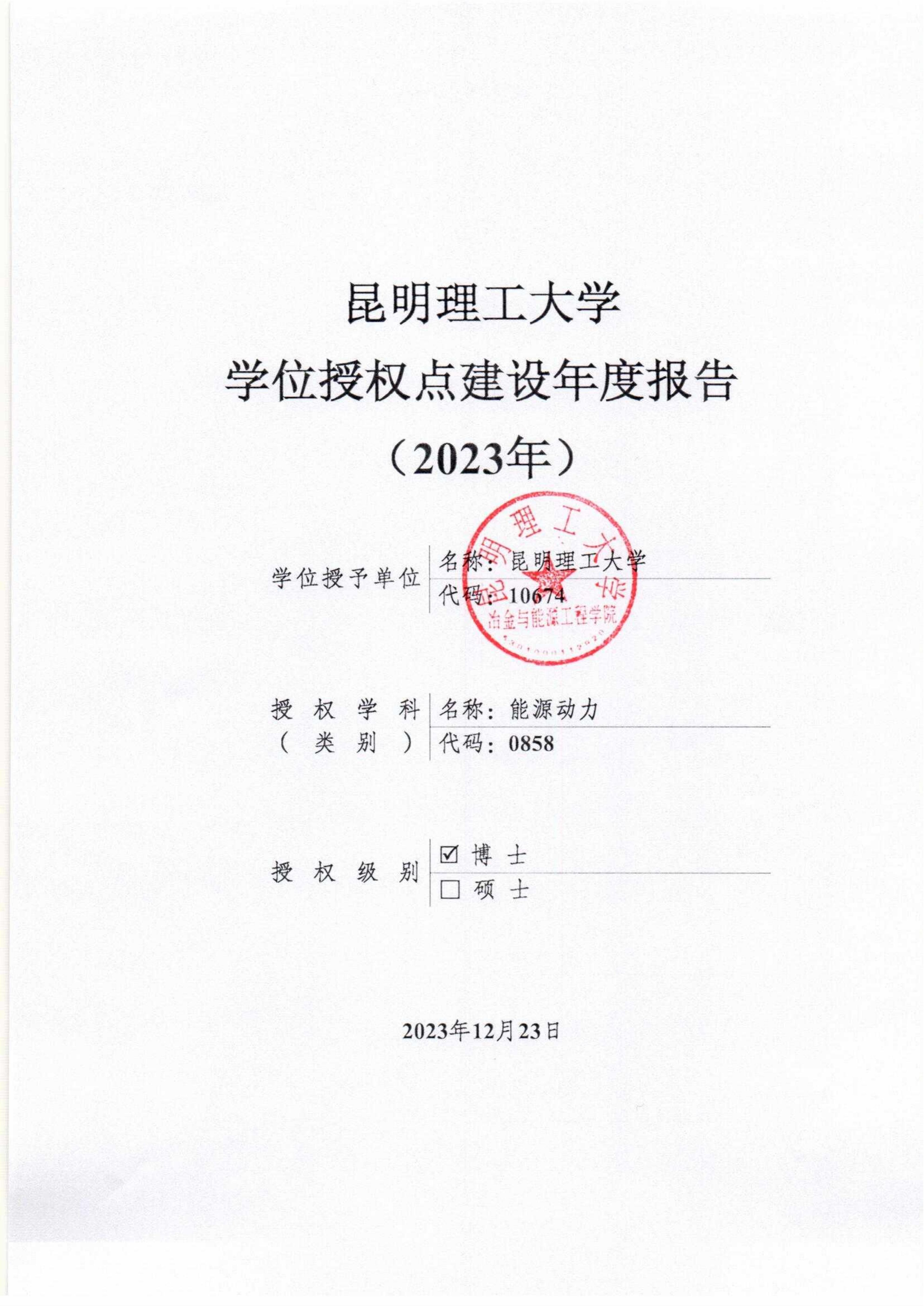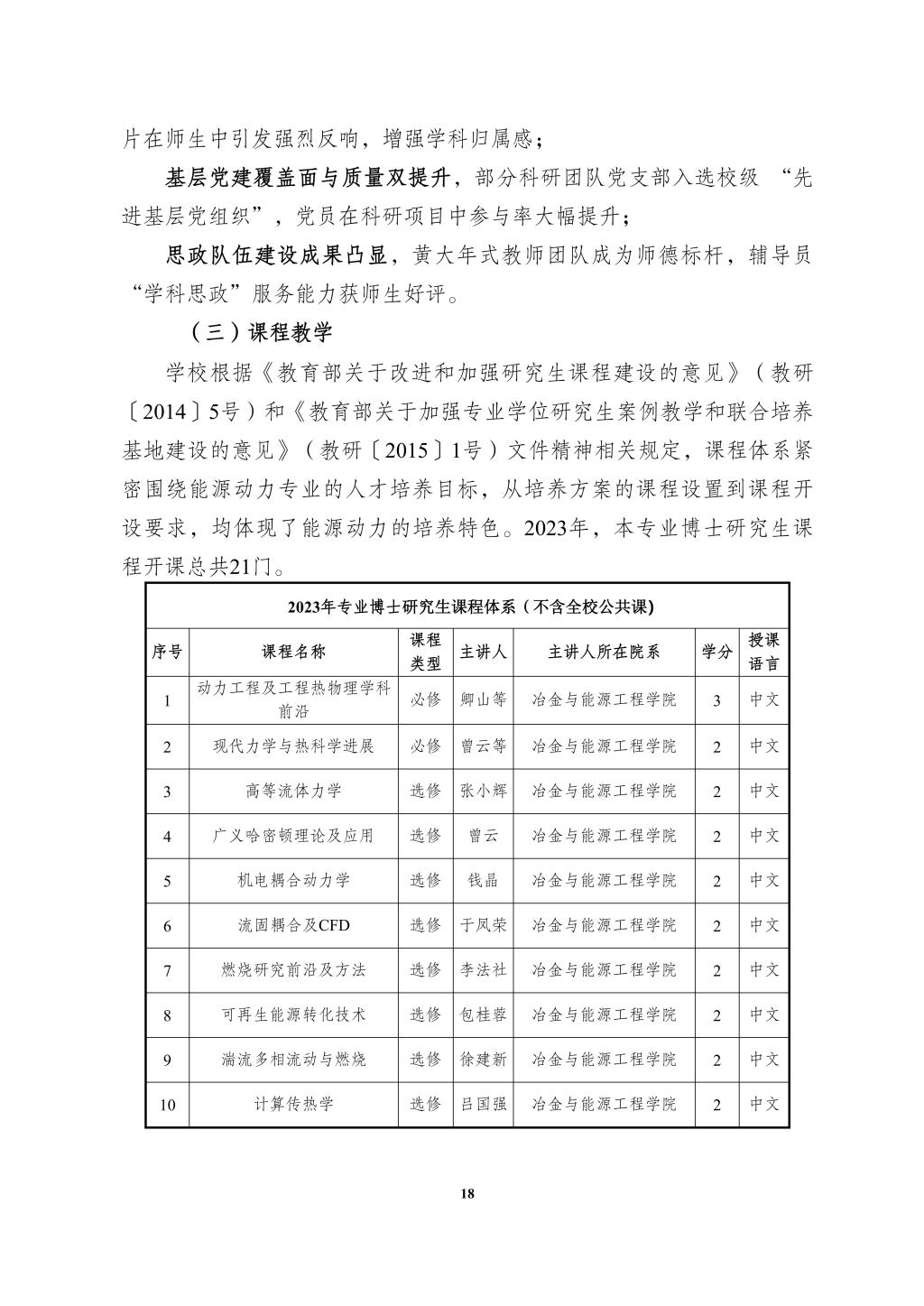 2023年度能源动力专业博士学位授权点建设年度报告