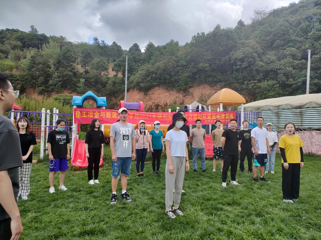 上午十点钟左右老师,还有各班的班长和团支书乘坐大巴车来到了昆明二龙湖拓展训练基地,在这里做的第一件事就是热身运动。拓展训练属于激烈性的运动,所以热身运动可以减少我们不必要的受伤。然后就是分为一、二组两个小队,给所在的小队创建属于本队的队名、队歌和口号和本队LOGO,以及团队风采展示。