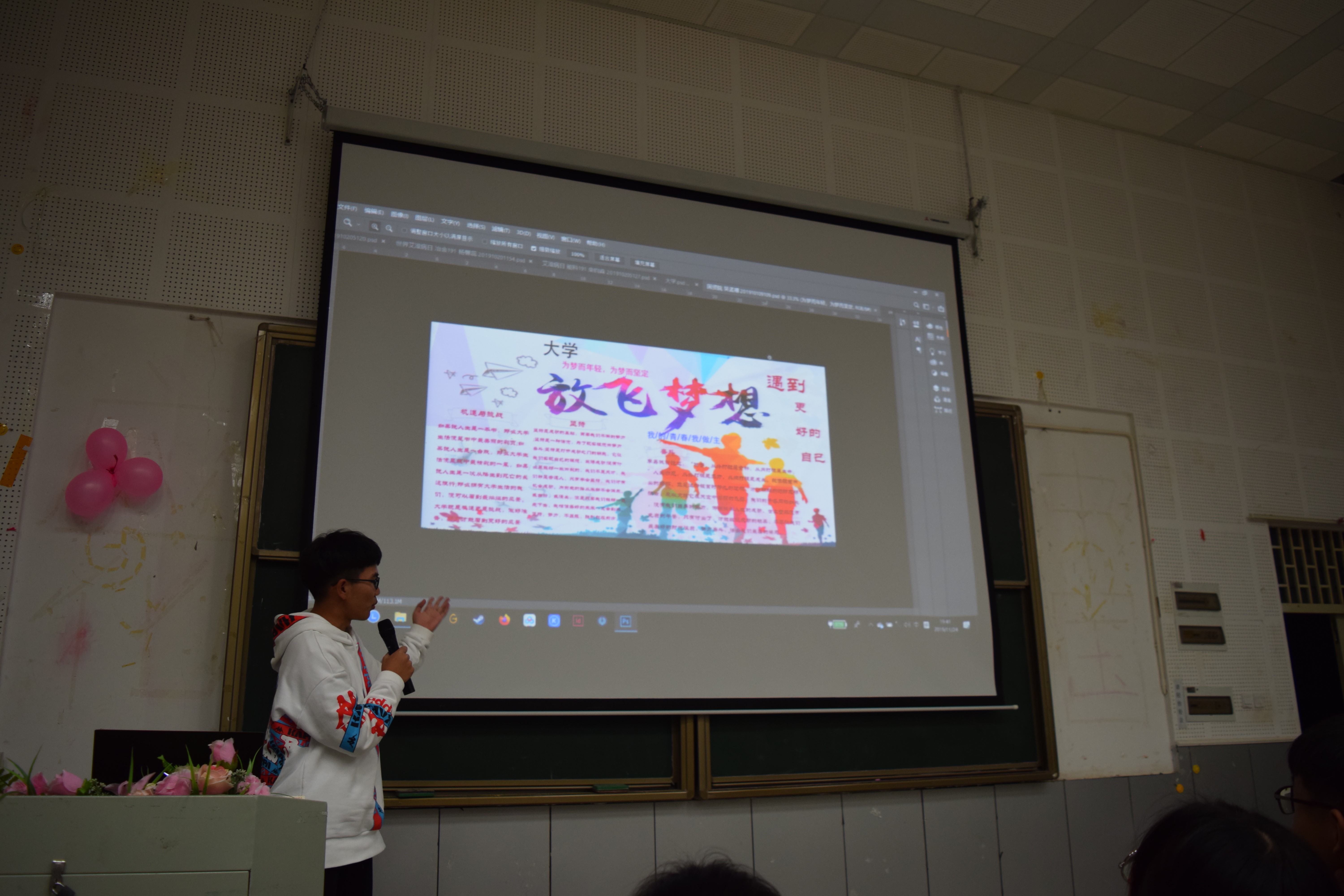 、国资学院、理学院、环工学院、医学院和艺传院联合举办的ps培训迎来了决赛。出席本次决赛的嘉宾有冶金与能源工程学院宣传部部长廖江帆同学,宣传部副部刘帛沅同学,参加本次比赛的为19级学生。