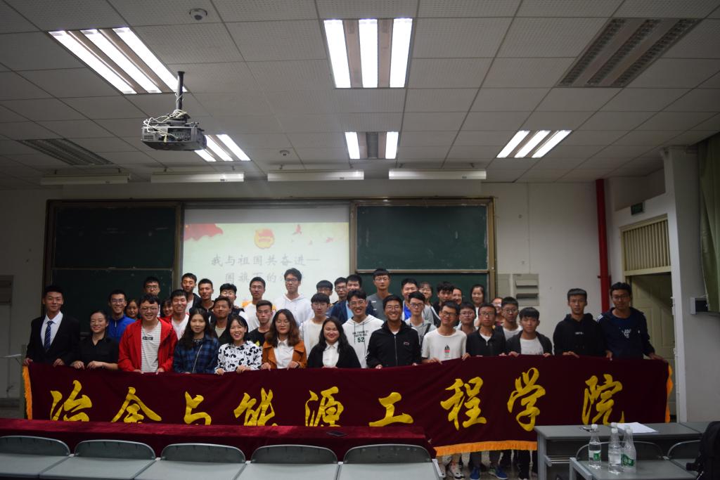 2019年9月28日19时,冶金与能源工程学院“我与祖国共奋进”特别主题团日活动在多媒体114教室顺利举办。此次活动的嘉宾有团委秘书长胡肖云同学、戴晶慧同学,优秀共青团员王灏宇同学、黄麟翔同学,学生翰林社社长吴才冉同学,学生组织部部长石焱同学、副部长柳月浩同学和学院18级、19级同学。