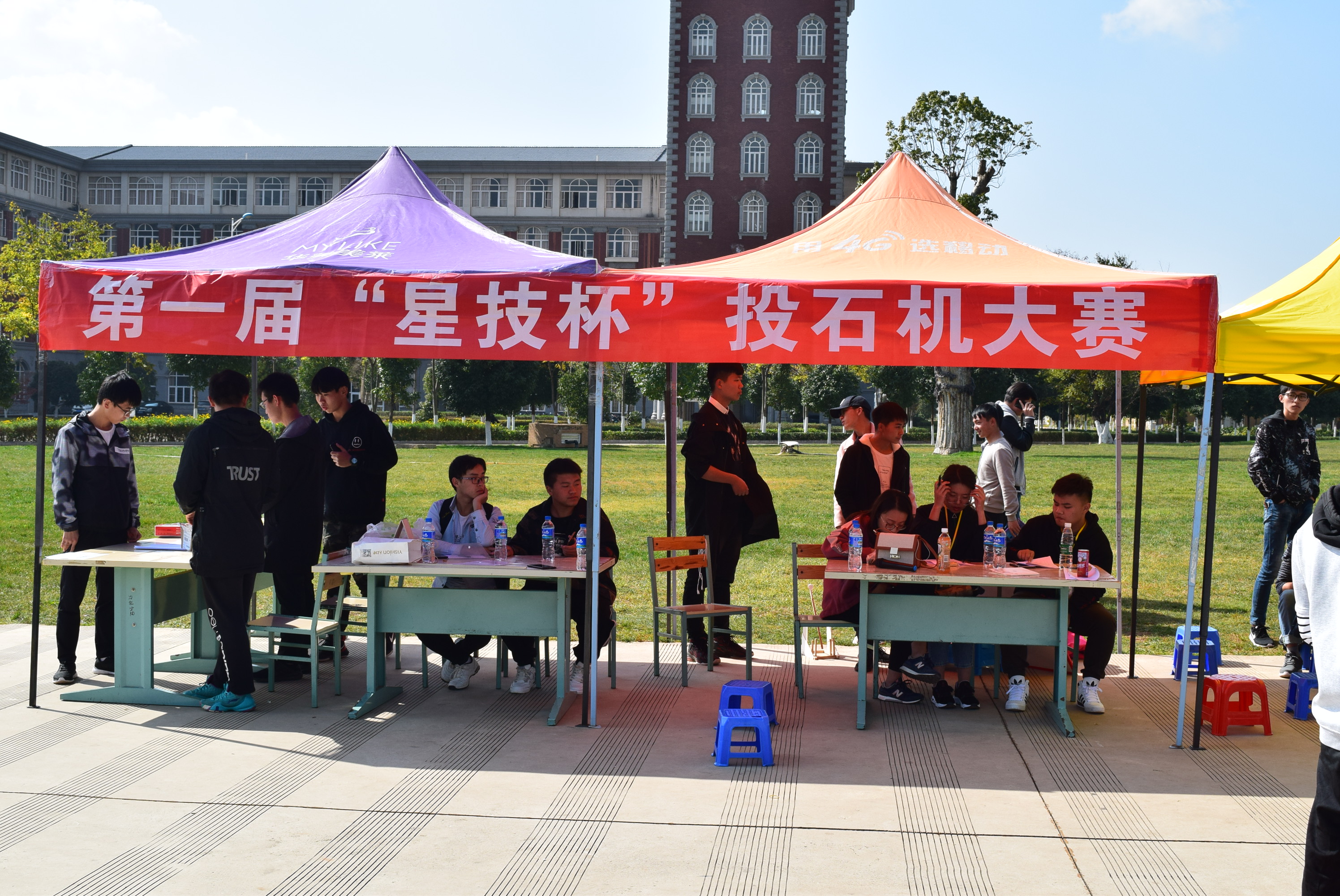 冶金与能源工程学院科技协会联合材料学院科技协会在呈贡校区公教楼前的草坪上举办了第一届“星技杯”投石大赛。