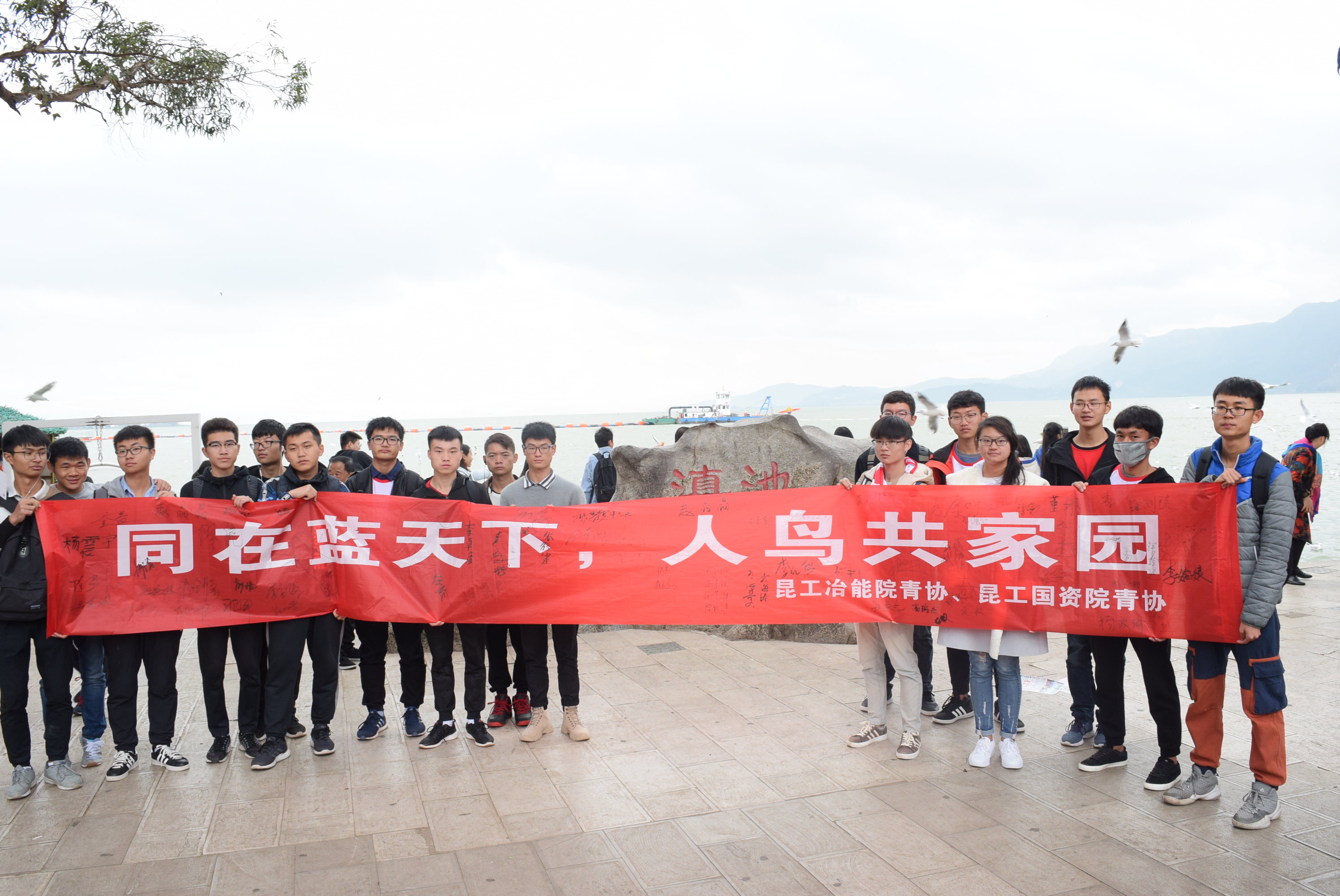 冶金学院与能源工程学院与国土资源学院联合举办的海埂护鸥活动于昆明市海埂大坝成功举办。