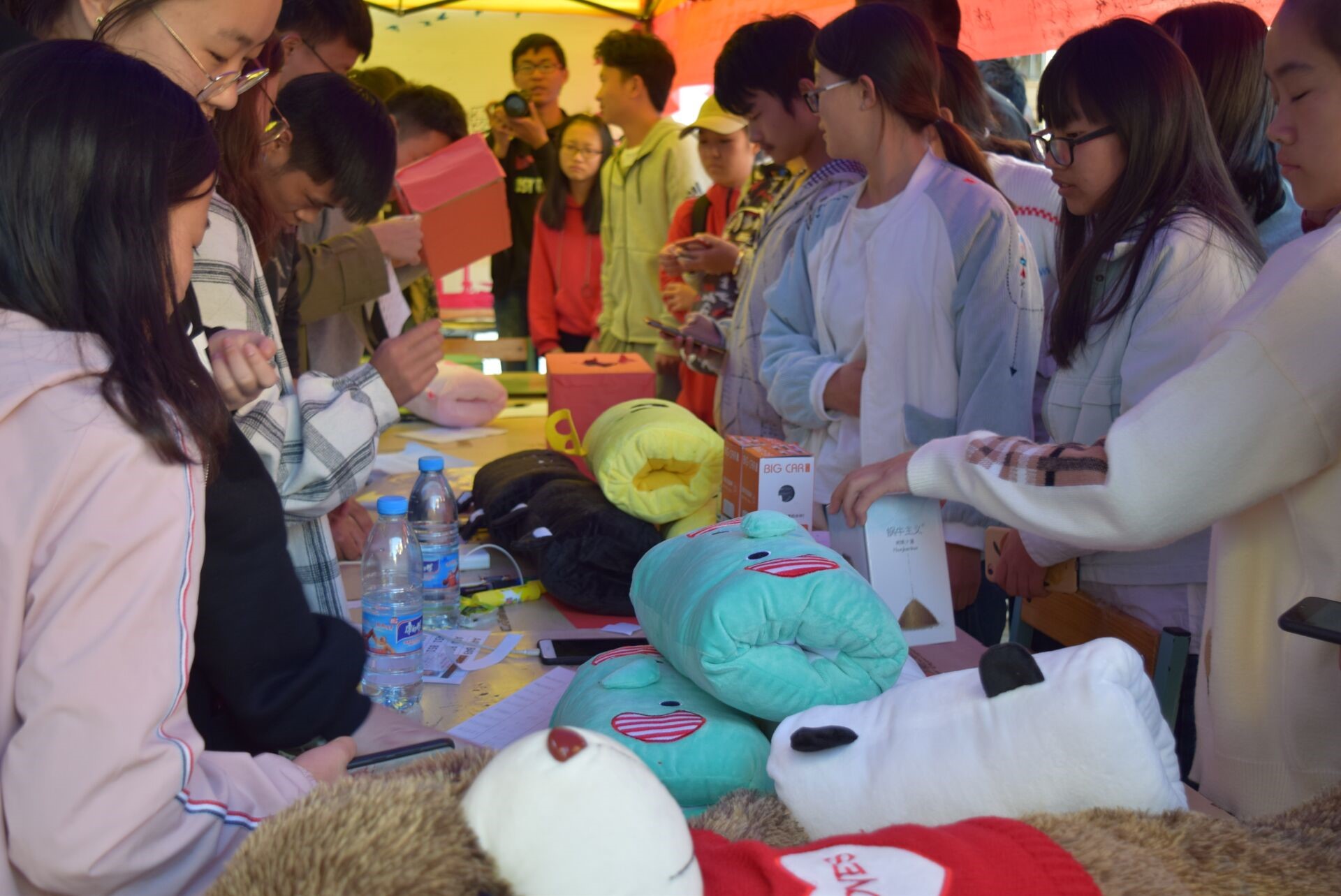 青年志愿者协会在憬园和怡园摆摊设点回收废纸箱,同学们把废旧纸箱拿到指定地点进行回收,然后参与小游戏,在宣传横幅上签名并参与抽奖。奖项设有一、二、三等奖及幸运奖共十六名,获奖者可得精美礼品一份。本次活动得到了同学们的积极响应,在帐篷前排出长长的队伍,以至于在短时间内收到的废纸箱就达到了主办方预期。本次活动的圆满结束体现出了昆工学子的良好的环保意识。在活动结束后,青协的工作人员们在活动帐篷前合影留念。