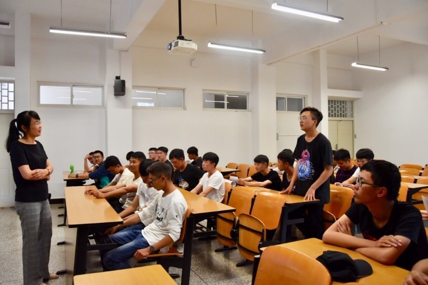 主讲老师早早地来到教室做好讲课的准备,随后同学们也按时来到教室。在专业介绍会开始后,杨老师首先向同学们提出一些问题,杨老师的提问引发了同学们的思考,介绍会的氛围也活跃起来。之后杨老师便对新能源材料与器件这个新专业做了详细的介绍,并且通过PPT向同学们展示了大三学长们外出实习的照片,让同学们对能材专业以后的就业方向有了一定的了解,也让同学们意识到创新对于创业、就业的重要性。在互动环节中,同学们积极地向老师提出问题,老师也非常耐心地解答同学们的疑问。最后介绍会在一片欢声笑语中顺利结束。