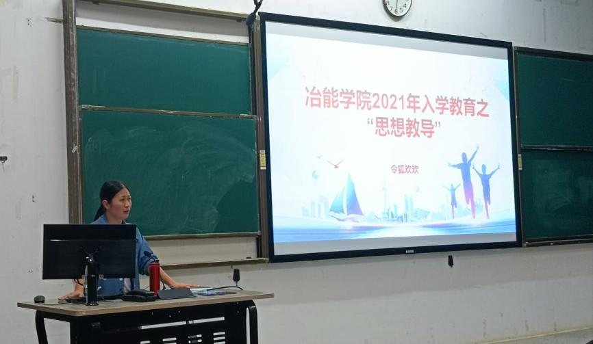 2021年9月27日晚18:00至21:30,冶金与能源工程学院党委副书记令狐欢欢在中心100报告厅为“21级453名新生讲授“开学第一课”。