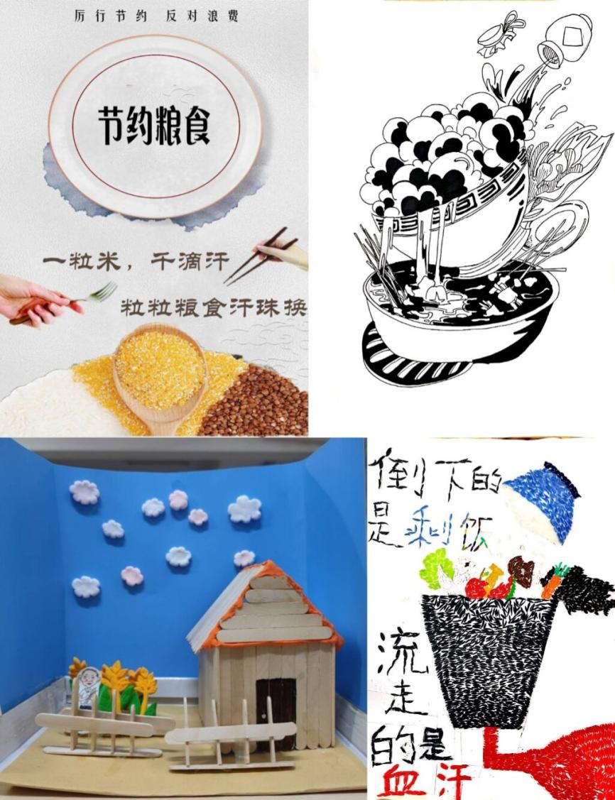 本次活动以“节约粮食,守护‘粮’心”为主题面向同学征集参赛作品包括但不限于:书画、摄影、手工制作等。参赛作品中,有匠心独运的画作、笔酣墨饱的书文、别具一格的海报、蕴意深刻的图徽......最终,相崇妍、余秀佳同学获得一等奖,五位同学获得了二等奖,五位同学获得了三等奖,十位同学获得了优秀奖。参赛者通过积极参与创作投稿,进一步了解了国家粮食安全问题,深入思考了艰苦朴素节约粮食的日常小事。