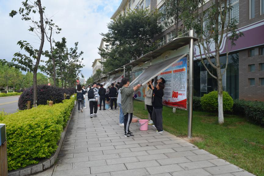 呈贡校区樱花大道海报宣传栏联合举办“校园卫生”志愿活动。