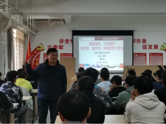 2021年12月3日下午,冶金与能源工程学院在憬园1138活动室开展“子约开讲”系列讲座。本期讲座邀请杨时聪老师为主讲嘉宾,讲座主题为《勇敢追梦,不负韶华》。