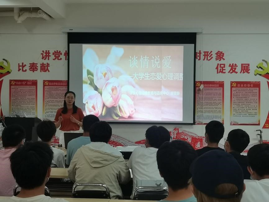 学生心理健康教育与咨询中心专职教师胡雯静作为主讲人,讲座主题为《谈情说爱——大学生恋爱心理调整》,44名同学参加本次讲座。