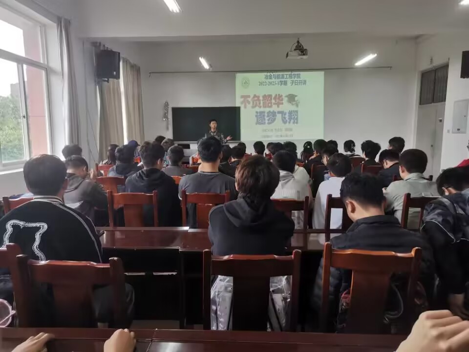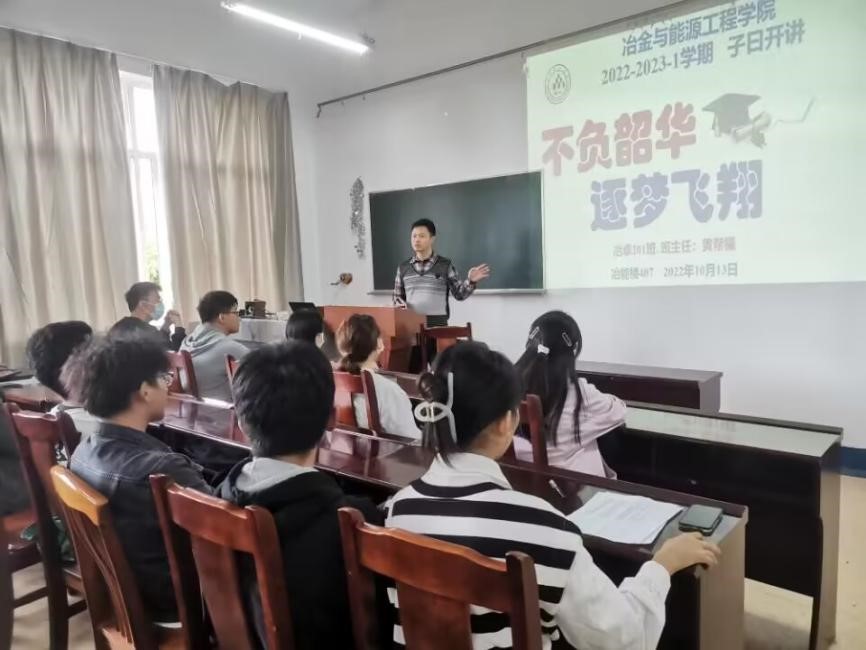 2022年10月13日下午,冶金与能源工程学院在冶能楼407教室举办“子约开讲”系列活动之“不负韶华,逐梦飞翔”讲座。本期讲座由冶卓201班班主任黄帮福担任主讲嘉宾,70余名本科生参加讲座。