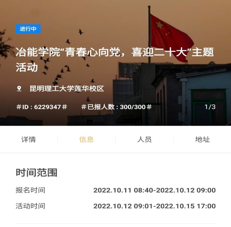 为丰富学生第二课堂活动,厚植爱国情怀,营造“爱党爱国”的浓厚氛围,引导广大青年“听党话、感党恩、跟党走”,2022年10月12日至15日,冶金与能源工程学院红魂青年社于开展"青春心向党,喜迎二十大"主题活动。
