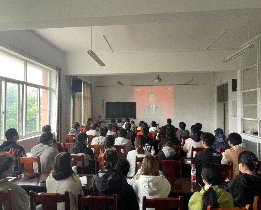 随后,同学们怀着激动的心情认真聆听中共中央总书记、国家主席、中央军委主席习近平代表第十九届中央委员会向大会作报告。同学们深受鼓舞,会议现场不断响起雷鸣般的掌声,纷纷表示要坚定不移听党话、跟党走,怀抱梦想又脚踏实地,敢想敢为又善作善成,立志做有理想、敢担当、能吃苦、肯奋斗的新时代好青年,让青春在全面建设社会主义现代化国家的火热实践中绽放绚丽之花。