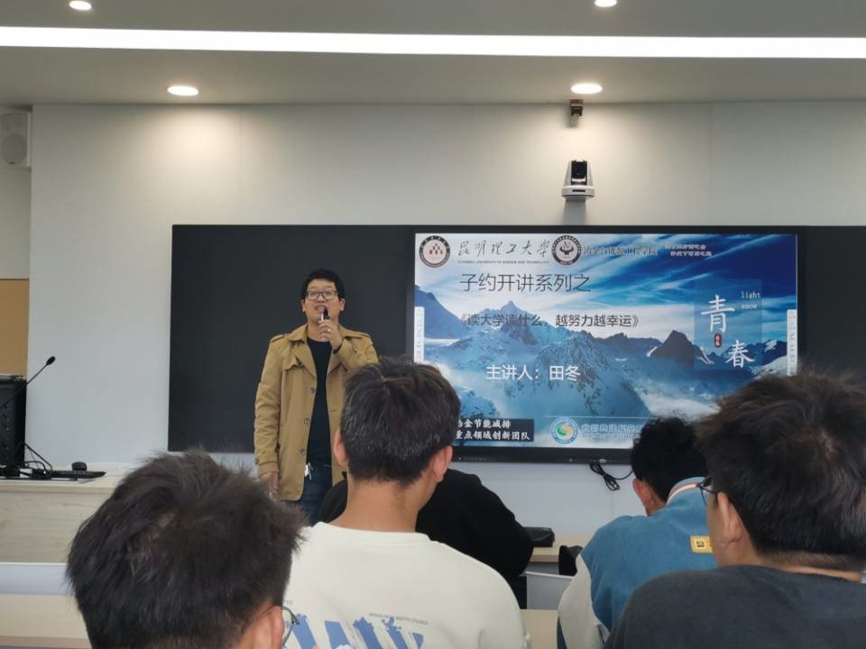 2022年10月27日,冶金与能源工程学院在主教学楼612教室举办“子约开讲”系列活动之“读大学读什么,越努力越幸运”主题讲座。本次讲座邀请了冶金224班班主任田冬为主讲嘉宾,共计80名同学参与讲座。