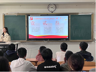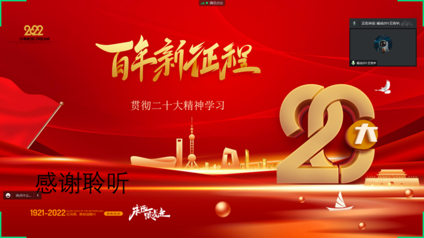 各团支部结合自身实际情况,通过线上观看中国共产党第二十次全国代表大会开幕会视频、线下组织以“学习二十大 永远跟党走 奋进新征程”为主题的座谈会、结合PPT讲解、交流会等创新形式深入贯彻落实党的二十大报告及大会精神,准确领会核心要义,深入学习宣传习近平总书记带领全党全国各族人民在实现中华民族伟大复兴新征程上走过的非凡十年,广泛宣传党和人民创造的新作为新业绩;部分团支部通过对党的二十大开幕式上金句的学习讨论,充分发挥团支部思想引领和服务青年成长成才的作用,进一步丰富爱国主义教育形式,激发广大青年学生爱国之情,强化爱国之志,营造爱国爱校的浓郁氛围。