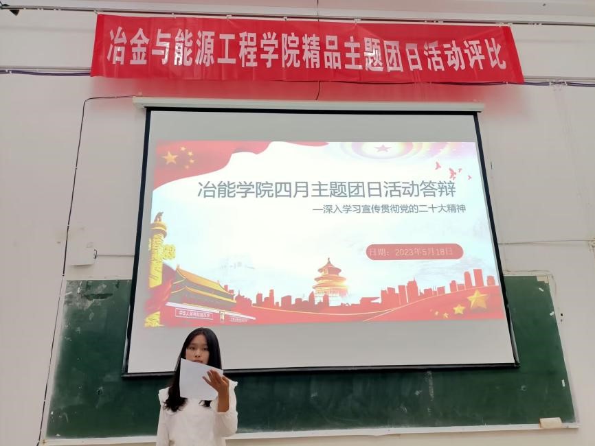 为展现四月精品主题团日活动开展情况,进一步提高团日活动质量,2023年5月14日和18日,冶金与能源工程学院在基础楼200报告厅举办四月精品主题团日活动院级答辩初赛。本次答辩围绕四月精品团日活动展开,2021级和2022级所有团支书参与。