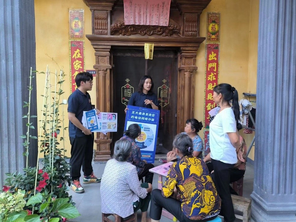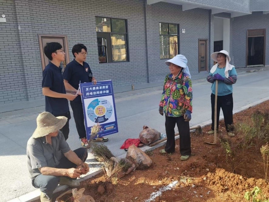 2023年暑期社会实践团队在麻栗坡县、西畴县深入农户、街道开展预防电信诈骗系列宣讲活动,筑牢安全防线。