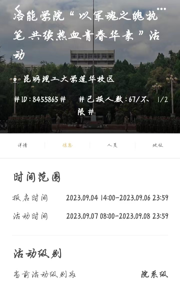 为展现同学们的军训风采,激发同学们的爱国情怀,冶金与能源工程学院新媒体中心于2023年9月4日至9月10日举办以“以军魂之魄执笔,共续热血青春华章”为主题的军训感言征集活动。此次活动面向冶能院全体2023级同学。