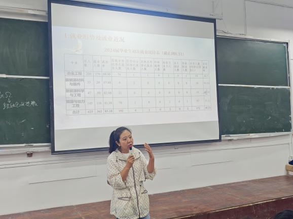 首先,杜威老师从就业形势及就业近况、就业政策及就业类型、就业指南及就业准备三个方面深入展开讲解,通过全面详实、具体的就业数据,让同学们对当前的就业与升学情况有了更为深刻的了解。通过鲜活生动的就业案例,使大家对专业前景与个人发展方向有了更加明确的认知。结合当下实际就业状况,杜老师告诫同学们一定要尽早明确个人职业规划,充分把握就业黄金期这一宝贵时机,树立“先就业,再择业”的就业理念。对于有保研、考研打算的同学,杜老师建议同学们“升学就业两手抓”,让同学们在追求学业进步的同时,也不忽视对就业机会的把握。