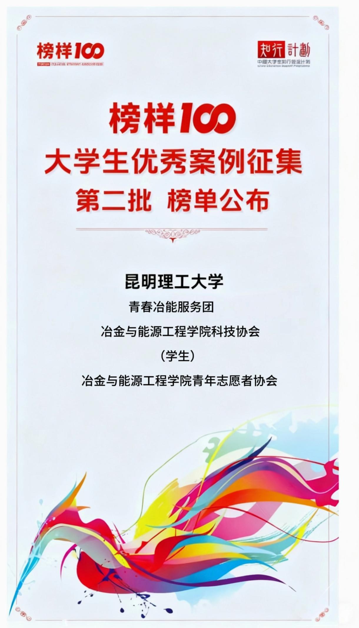 青年志愿者协会、科技协会、青春冶能服务团从全国576所高校的3200余个学生社团中脱颖而出,成功入选“榜样100”优秀社团榜单!