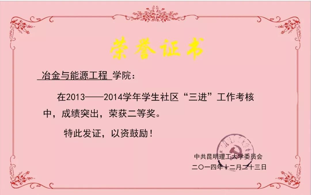 2013-2014学年学生社区“三进”工作考评“二等奖”