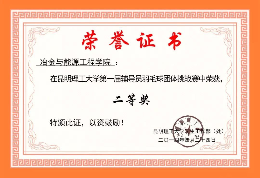 第一届辅导员羽毛球团体挑战赛“二等奖”