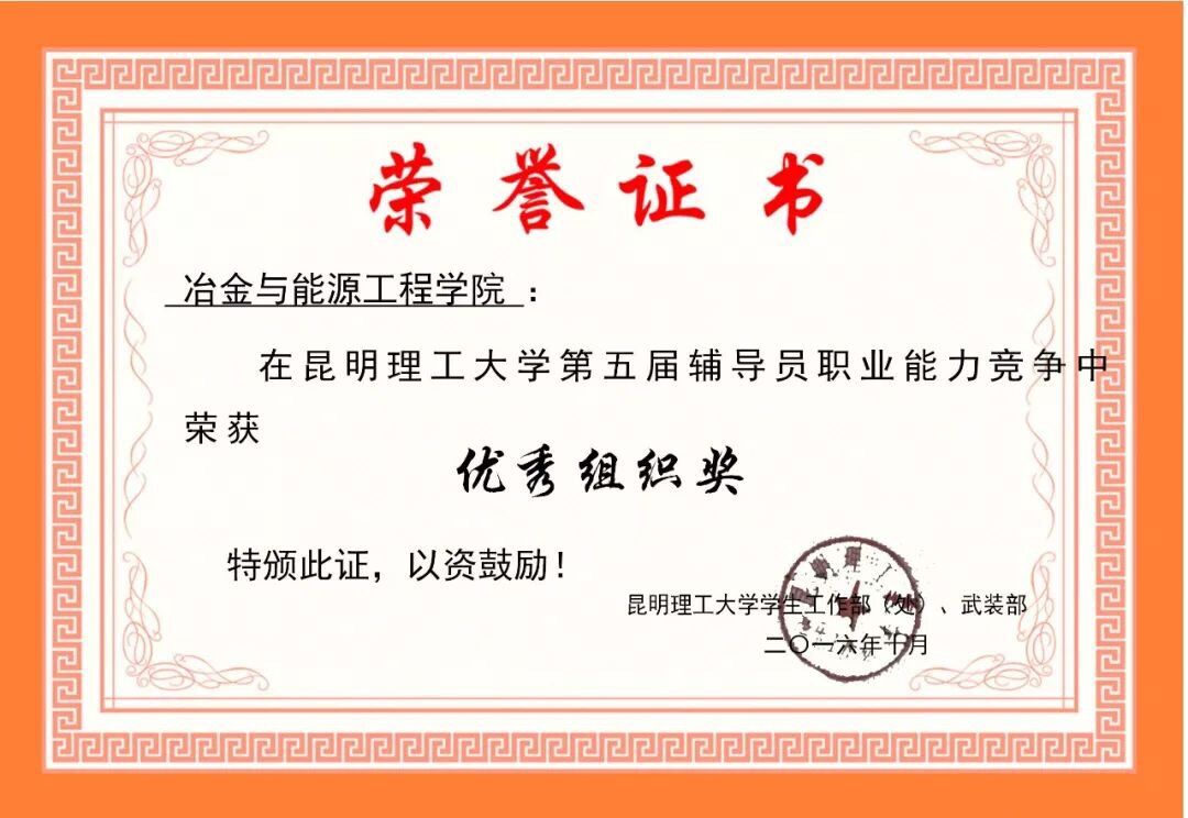 第五届辅导员职业能力竞赛“优秀组织奖”