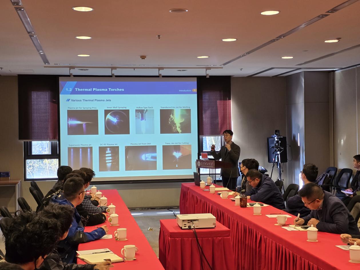本次学术报告主要聚焦于热等离子体在功能纳米材料制备和废弃物热解方面的应用研究。首先,Sooseok Choi教授详细阐述了热等离子体的特性及诊断方法,并对基于等离子体化学的功能材料制备进行了讲解。随后,Sooseok Choi教授进一步探讨了热等离子体系统在甲烷热解过程中的应用,并阐述了热解机理。报告结束后,与会的师生们就报告内容及实际研究中遇到的问题与Sooseok Choi教授展开了深入的交流。此次交流不仅提升了师生们的学术交流意识和能力,还促进了学生国际视野的培养。