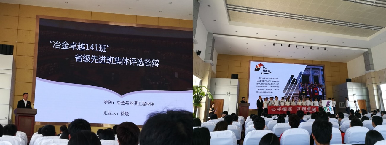 冶金卓越141、冶金卓越161两个班级进入答辩环节并突破重围分别以第三名及第五名的好成绩荣获省级先进班集体荣誉称号。