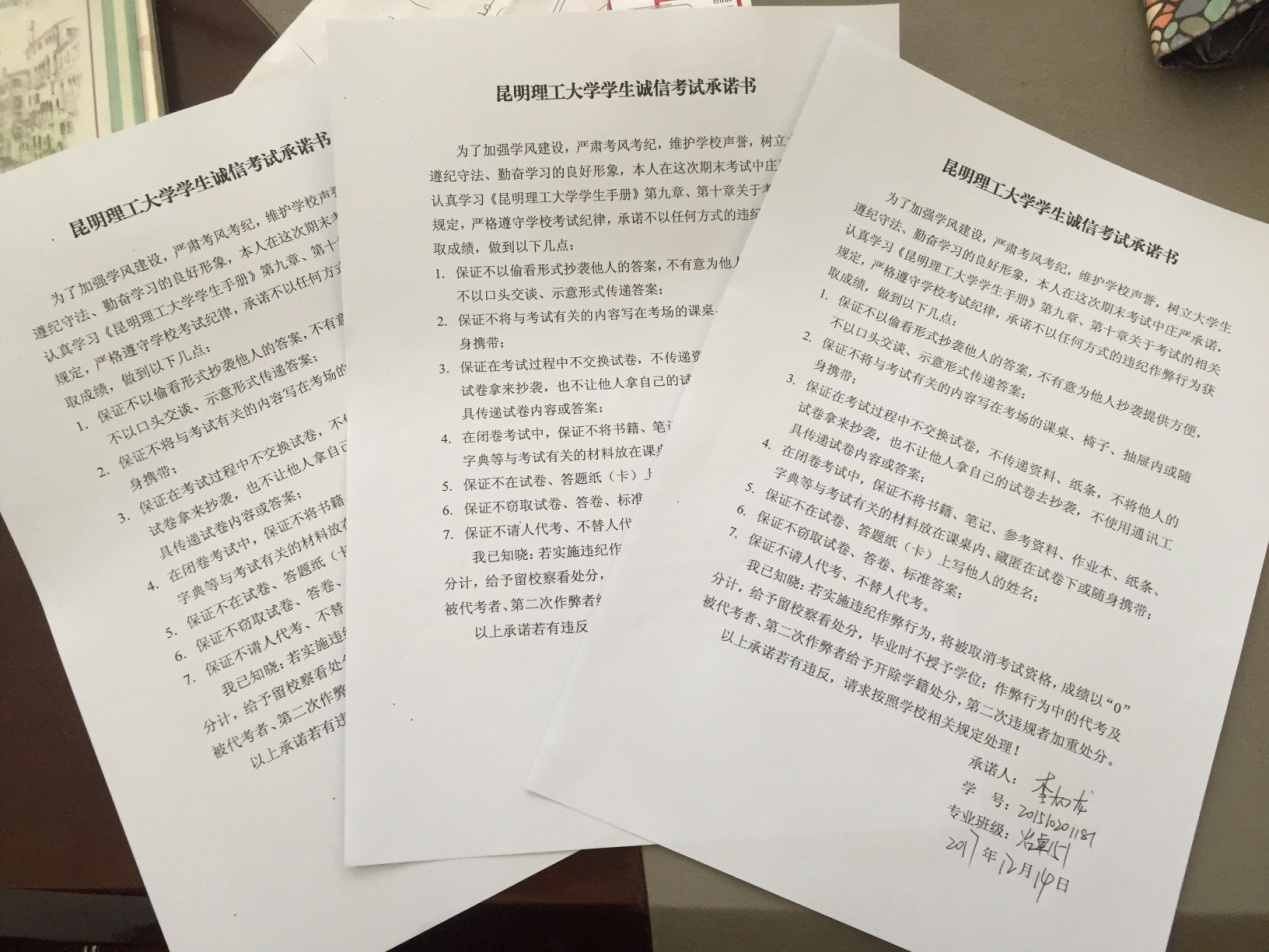 “立于德,成于学,展于创,益于民”是戴永年院士向冶金学子提出的要求。诚信,是“立于德”的具体体现,也是“成于学,展于创,益于民”的首要条件,更是对大学生的基本要求。同志们纷纷表示一定严格遵守考试纪律、严以律己、诚信求学。