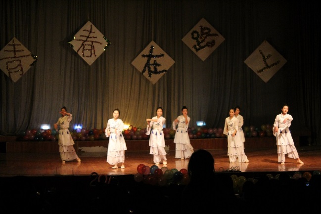 11、晚会下半场开始,第一个节目是由冶能院的美女们带来的中国风舞蹈《落花情》,精美的服装,优美的舞姿,不禁让观众中的男同学们一个个都瞪大了眼睛。