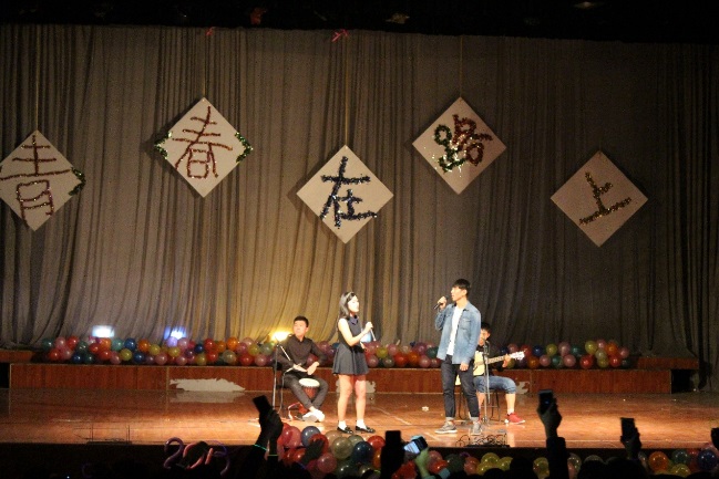 3、正当大家依然沉浸在音乐的气氛中时,一个自编自导的情景喜剧《爱之初体验》走向舞台。不得不佩服他们能够在短时间内完美地完成这个作品,并引得观众的阵阵笑声。