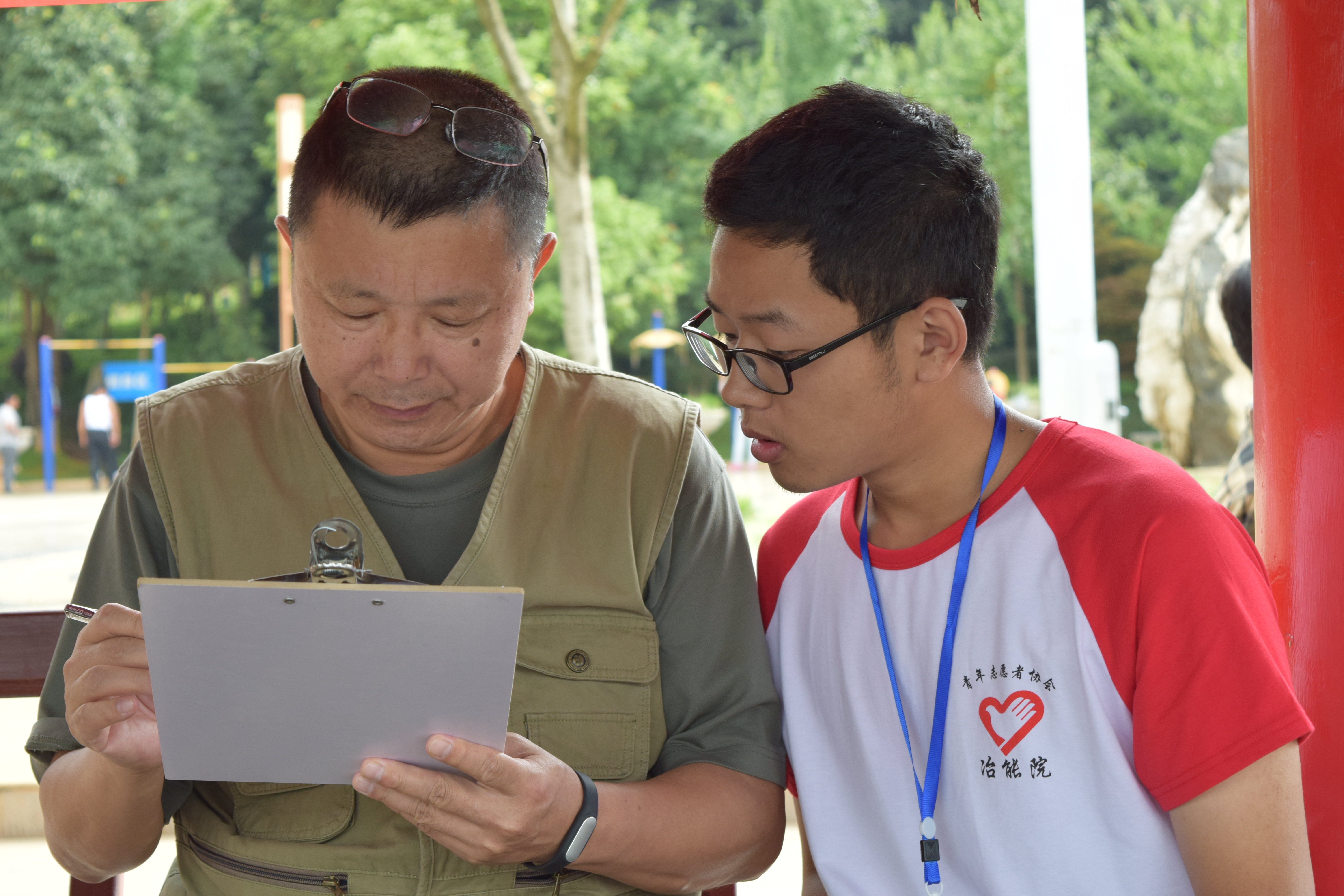 冶金与能源工程学院——“三下乡”社会实践小组, “社会主义核心价值观调研小组”进入洛龙公园开展相关知识的调查与宣传。