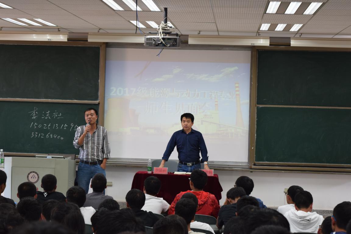 冶金与能源工程学院在多媒体420教室顺利开展能动专业师生见面会。本次见面会有幸邀请到能动专业系主任李法社老师,系副主任吕顺利老师到会,能动专业17级所有新生参加本次见面会。