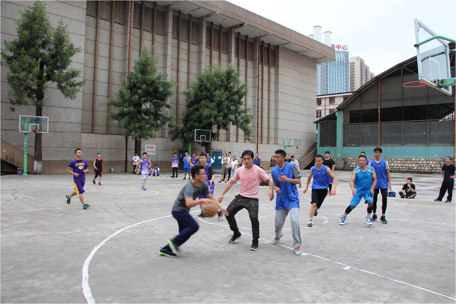 学工办和冶金系在莲华校区篮球场联合举办“不忘师恩,铭记教诲”冶金师生篮球友谊赛,冶金系老师代表队和毕业生代表队参加此次比赛。