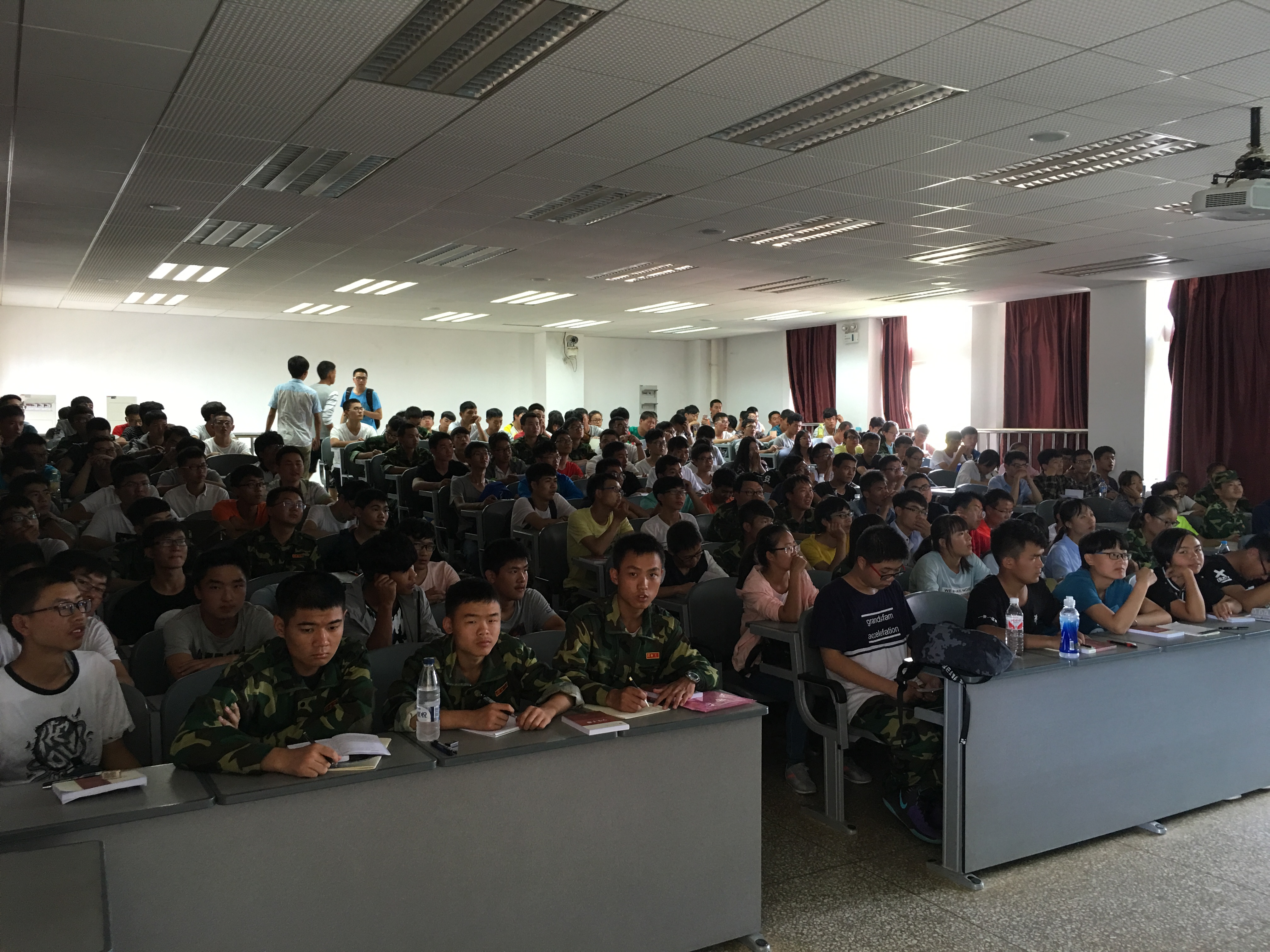 而后上台的两位优秀学生为新生简略地描述了大一的生活,分享了自身经历,心得体会。他们告诫新生,找到自己在大学的定位,然后努力朝着目标奋进;合理利用空闲时间,加入社团或者培养良好兴趣;把握机会,锻炼自己;增长见识,提高自身素质。最后的提问环节,新生向他们提出了自己的困惑,同样得到了满意的答复。